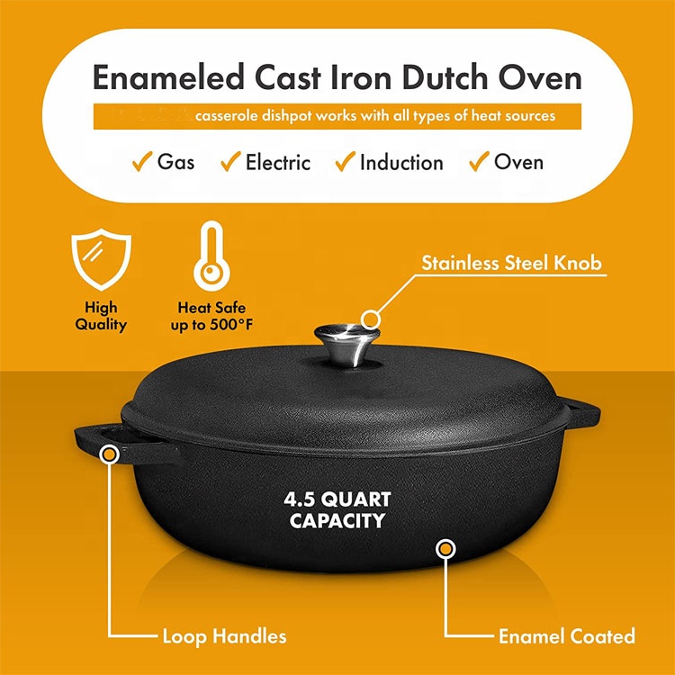 Ochrana zdraví a životního prostředí Povrchová úprava Železné lité hrnce Kastrolky Nepřilnavé nádoby na mořské plody Smaltované nádobí MOQ 500 ks pro individuální velikost a barvu.