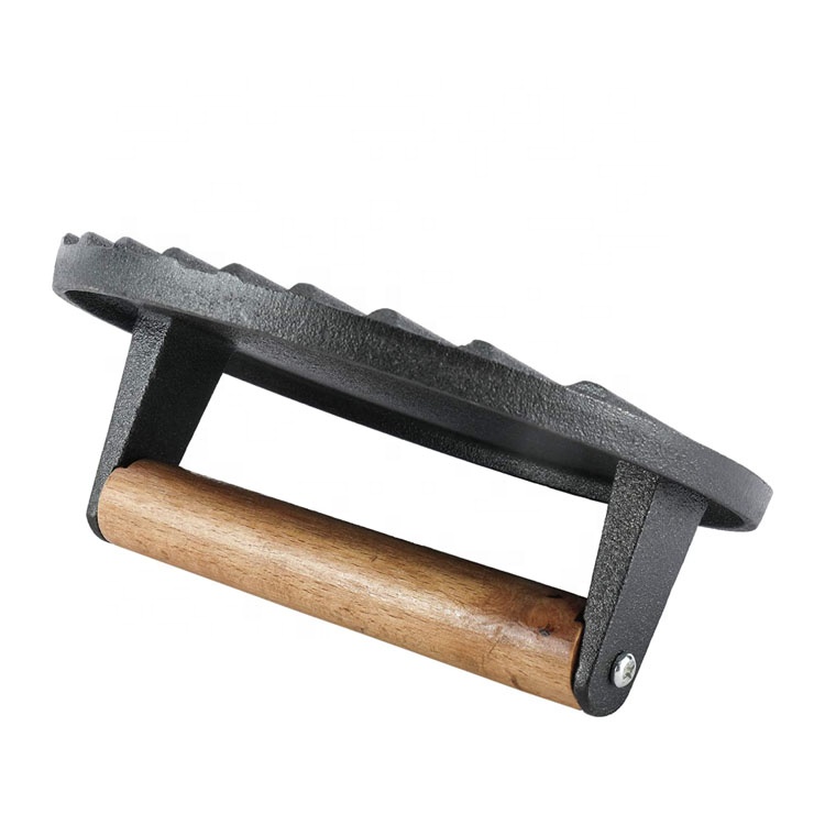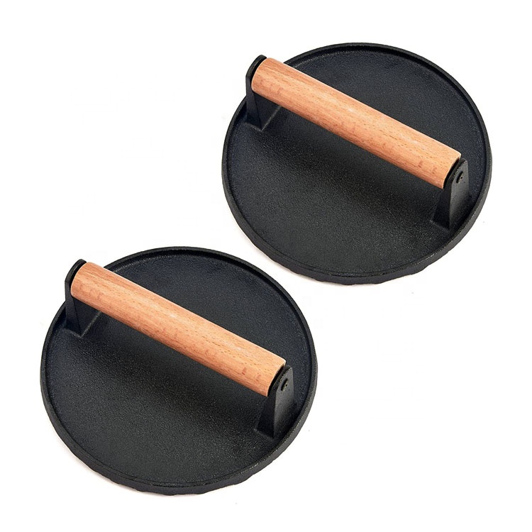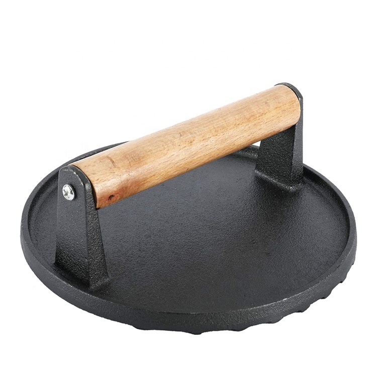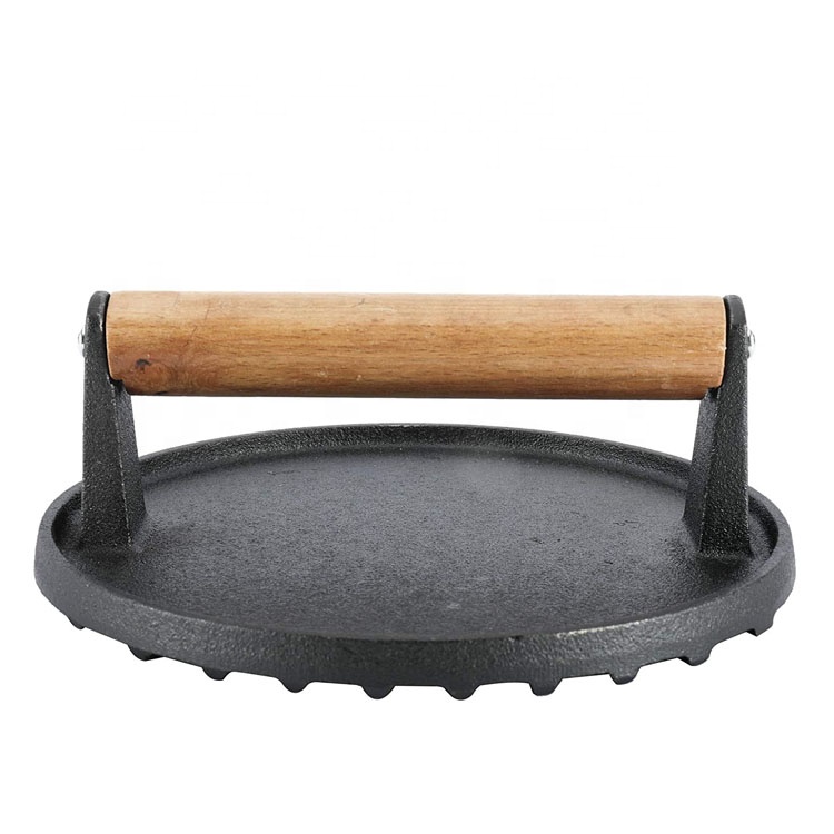 Træhåndtag Rund Grill Press Støbejern Grill Kød Press Maker Smash Burger Press