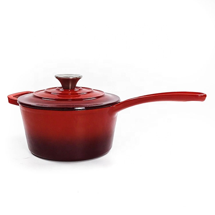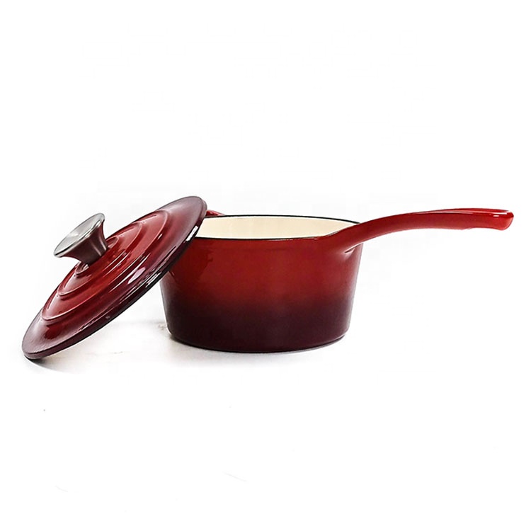 फैक्टरी आपूर्ति 19 सेमी तामचीनी कास्ट आयरन सॉस पैन ढक्कन के साथ तामचीनी कास्ट आयरन सॉस पॉट MOQ 500 पीसी व्यक्तिगत आकार और रंग के लिए: