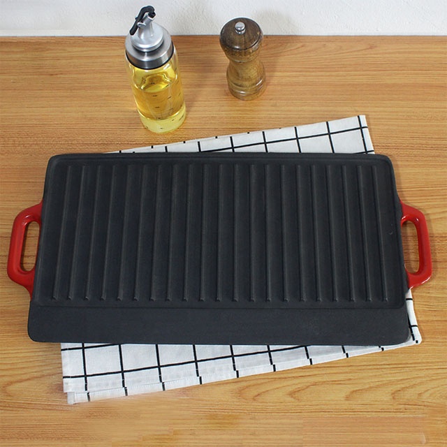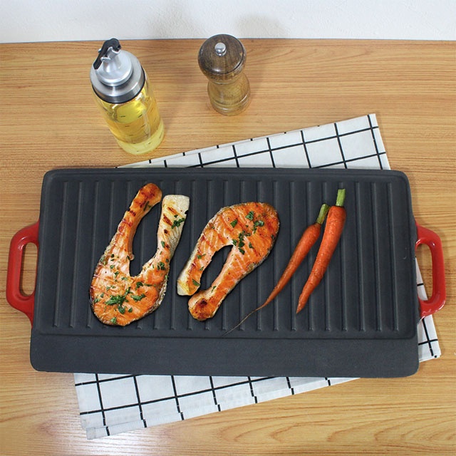• DOUBLESIDED PAN – Don’t settle for one type of grill. Cook a variety of meals on this reversible griddle/grill. On the smooth side, cook eggs, pancakes and bacon. On the ridged side, grill steaks, burgers, and veggies!