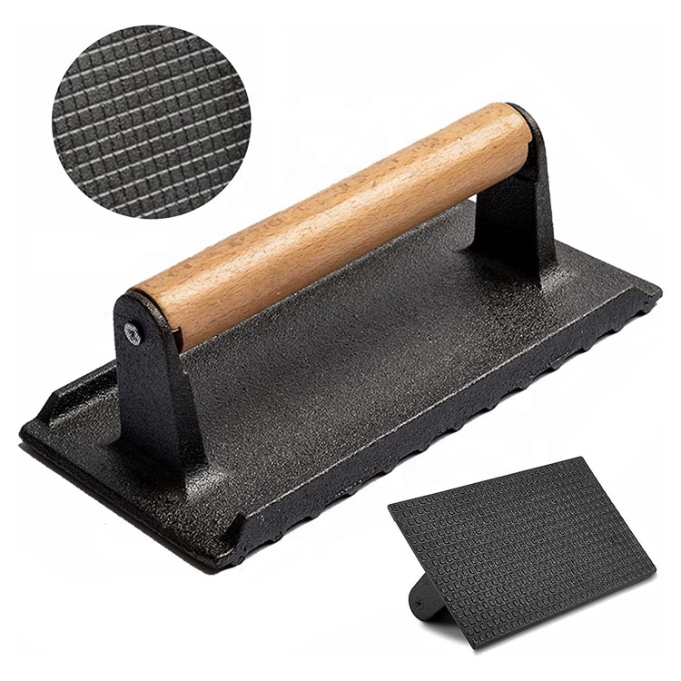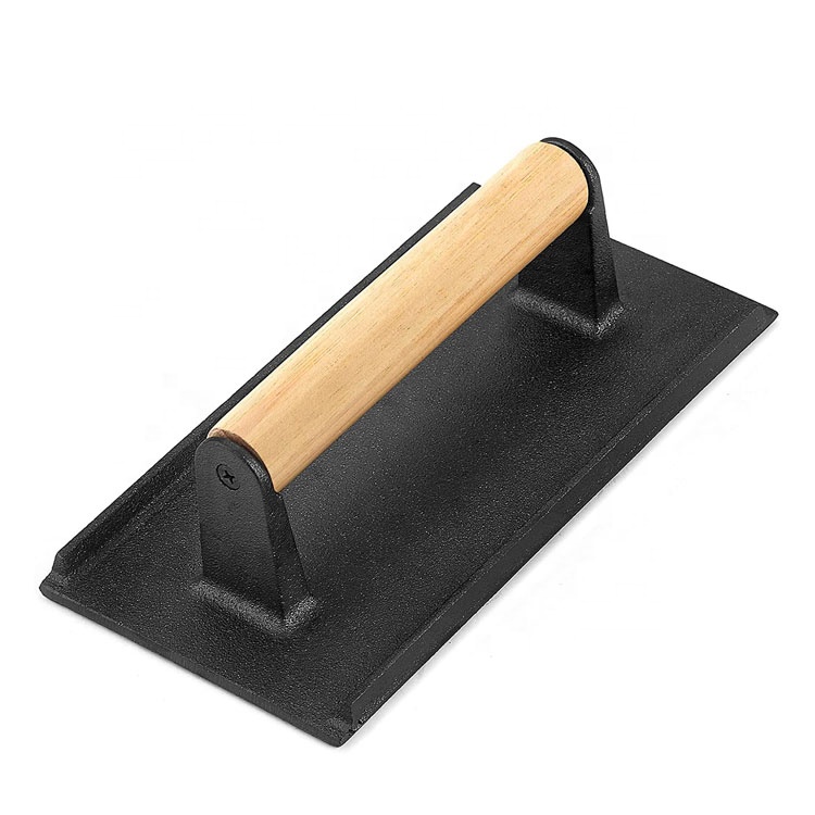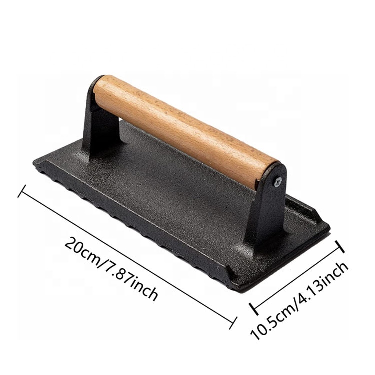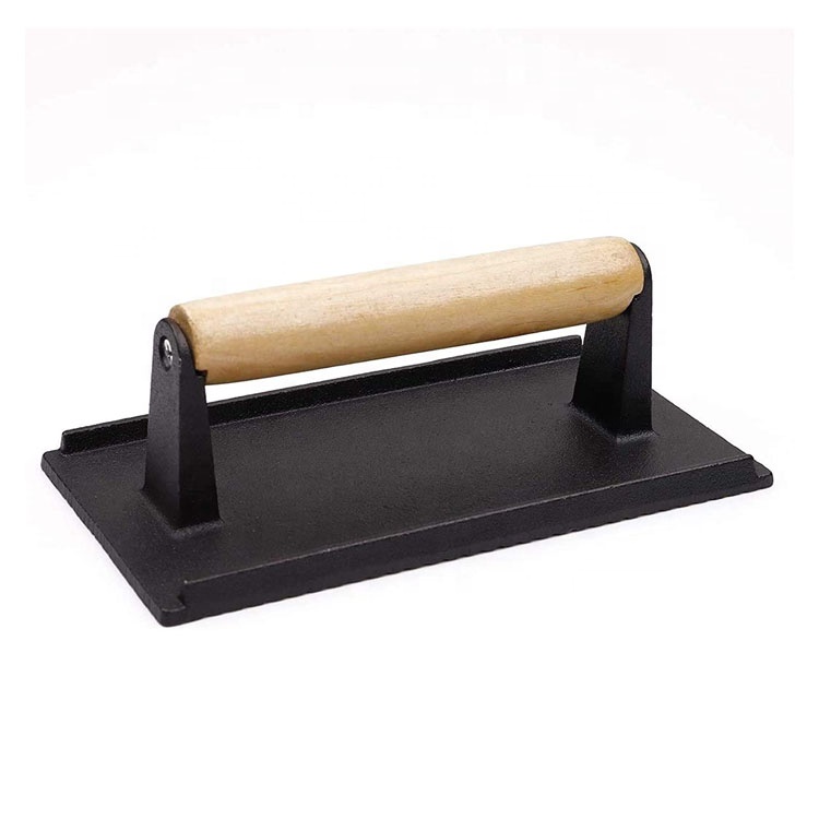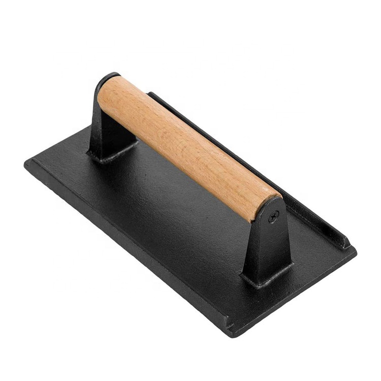 Rectangle Heavy-Duty Cast Iron Smash Meat Steak Burger Press With Wood Handle