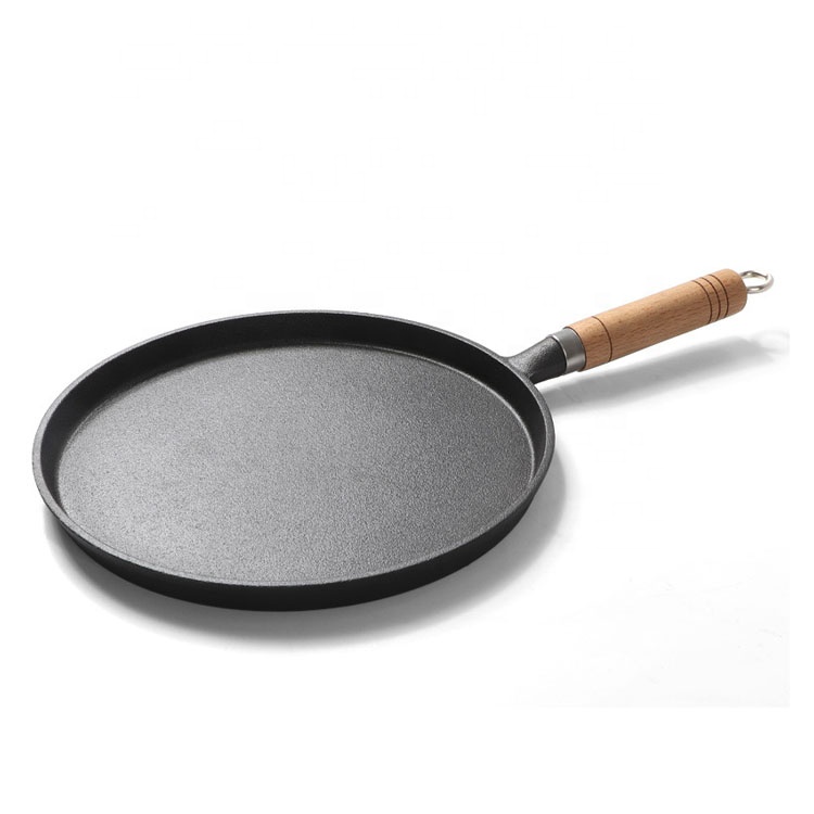 The High Quality Kitchen Durable Black Round Cast Iron Cookware Pancake Crepe Pan is a premium kitchen essential designed for both home chefs and professional cooks. Crafted with precision and durability in mind, this cast iron cookware offers a blend of traditional craftsmanship and modern functionality. Its black finish, wooden handle, and heat retention capabilities make it a versatile tool for a wide range of culinary tasks. This article explores the product's features, advantages, technical specifications, applications, and the company behind it.