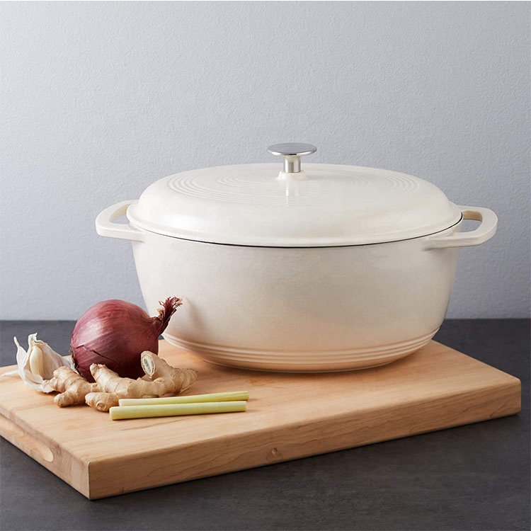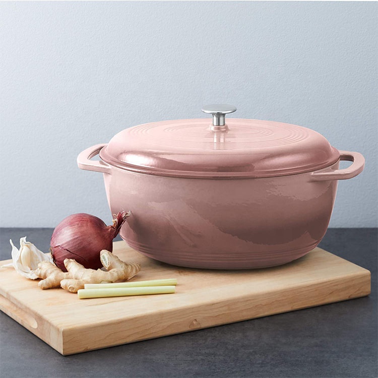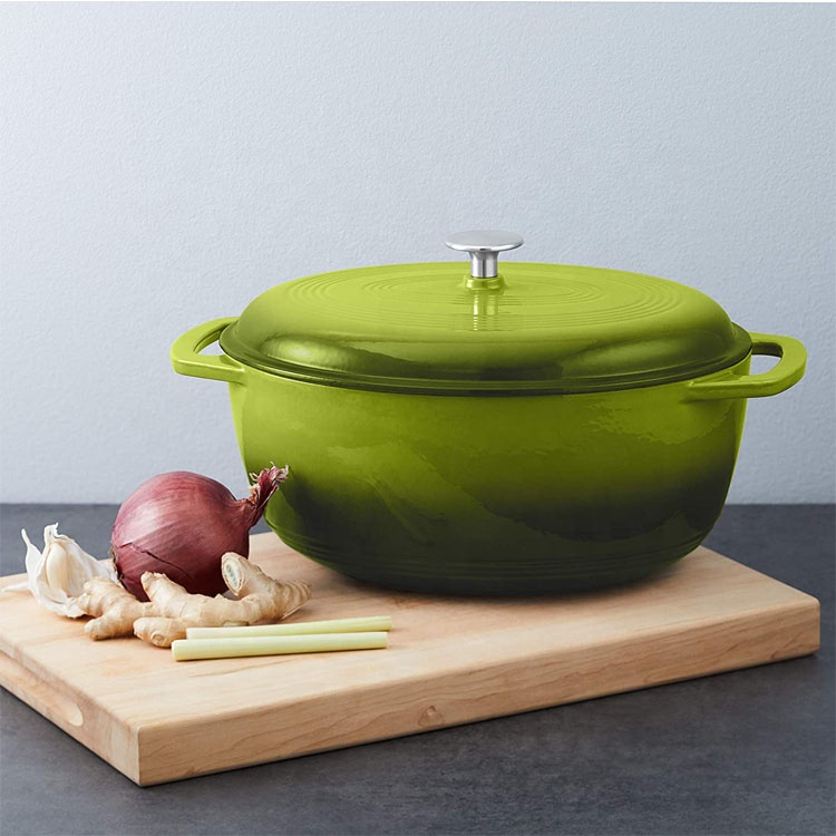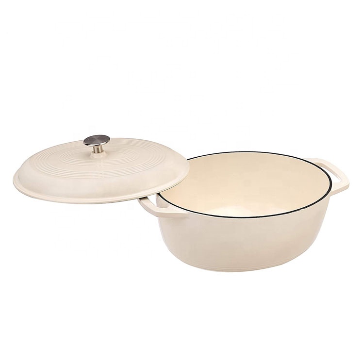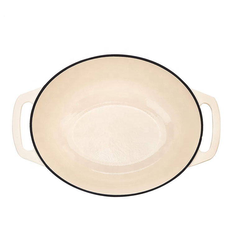 Enamel masak Casserole Oval Walanda Oven tuang Beusi Enamel Oval Walanda Oven Casserole MOQ 500 PCS pikeun ukuran individu jeung warna.
